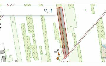 Szerokość działki około 30 m, długość około 260 m, kształt rombu.